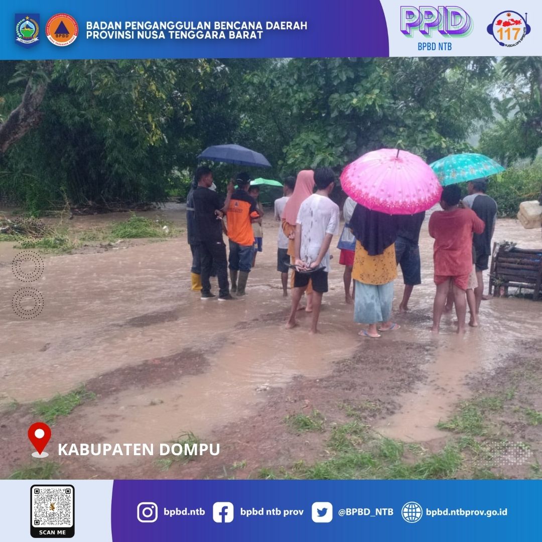 Senin, 20 Januari 2025 telah terjadi hujan dengan intensitas tinggi dengan durasi yang cukup lama berkisar siang hingga sore hari Kabupaten Bima dan sekitarnya sehingga sungai-sungai diwilayah tersebut mengalami luapan dan merendam permukiman warga di Kabupaten Bima tepatnya di Desa Pandai, Risa, Dadibou, dan Penapali Kecamatan Woha, Desa Sandue Kecamatan Sanggar, Desa Teke dan Belo Kecamatan Palibelo, Desa Sakuru dan Baralau Kecamatan Monta, Desa Leu dan Rato Kecamatan Bolo, Desa Renda Kecamatan Belo. Kejadian ini juga terjadi di Kabupaten Dompu, Desa Lepadi, Kecamatan Pajo. Di Kota Bima tepatnya di Kelurahan Paruga dan Tanjung dan Kelurahan Rabadompu Timur Kecamatan Raba.